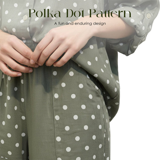Completo con camicia a pois e pantaloni larghi